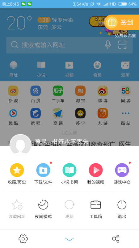 打开uc uc浏览器怎么进入到抖音的创作者服务中心?