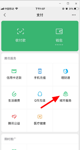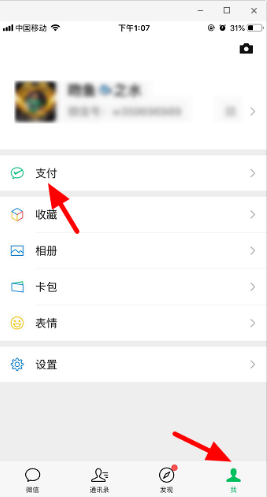 1、打开微信,进入“发现”页,点击“支付”,如下图所示: