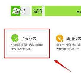 3、d盘空间已经不足了,需要扩大d盘空间,点击界面下方的扩大分区按钮,进入扩大分区界面。
