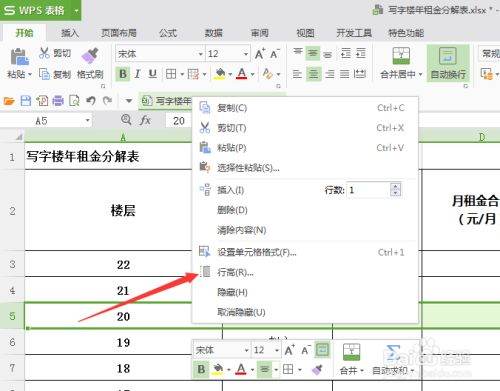 选择要调整的行以后同样的右键单击选择行高就可以了,这种方法调整起来要更精确。