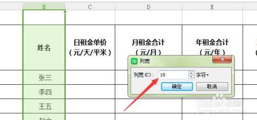 在列宽中输入具体的数值然后点击确定,我们可以选择多个列一起调整。