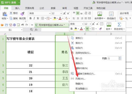 还有一个方法是可以选中一列,然后右键单击选择列宽。