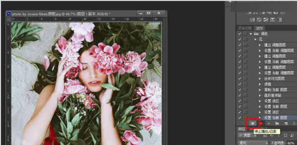 5、所有的修图步骤都完成后,点击“停止”按钮,接下来就开始试验你刚刚的整个修图流程。