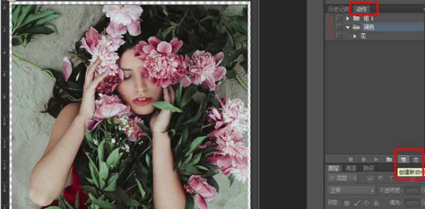 1、首先将一张JPG格式的原图拉进PS,选择「动作」,创建一个新动作。