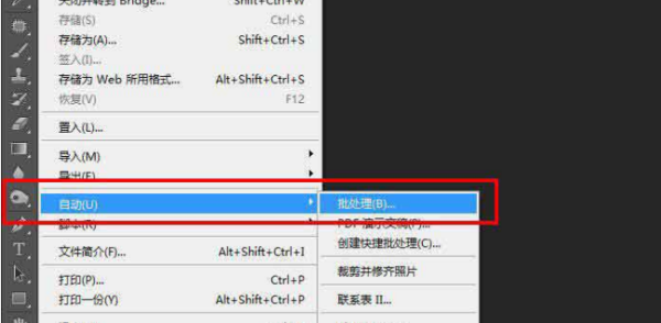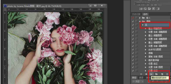 6、、将一张原图拖进PS,选定修图动作,如下图所示。