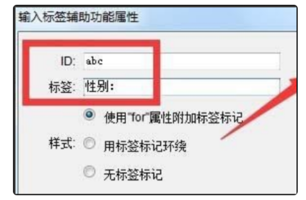 5、然后弹出接口,您需要输入标记辅助函数的属性。用英文或数字填写身份证。标记是下拉菜单的相应数据标题,如地址、性别等。在此处填写“性别:”然后单击“确定”。