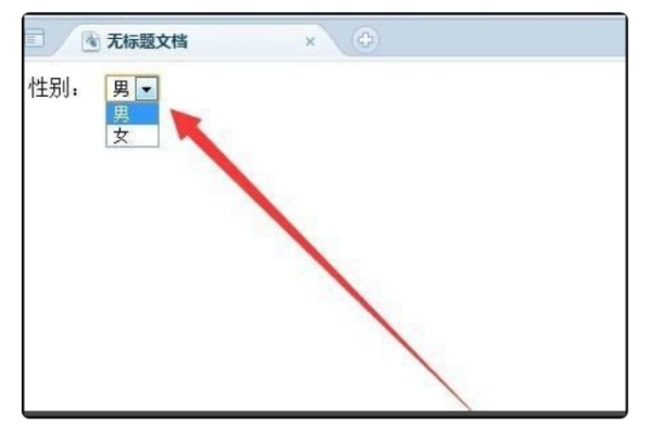 7、此时,下拉菜单将插入页面。单击下面的列表值将内容添加到下拉菜单中。
