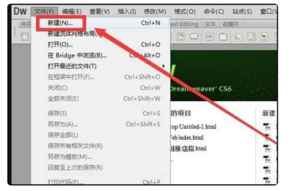 1、先打开Dreamweaver。如果事先有好的web源文件,可以直接单击“文件打开”打开web源文件。如果没有,请单击“文件”“新建”以创建新的web源文件。