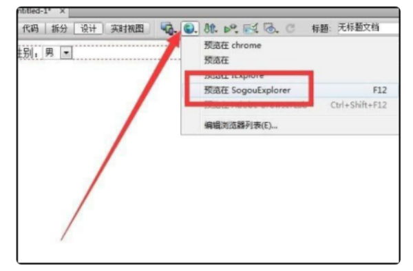 10、然后单击界面上箭头指示的小图标,选择一个浏览器,然后单击它以查看浏览器上的预览效果。