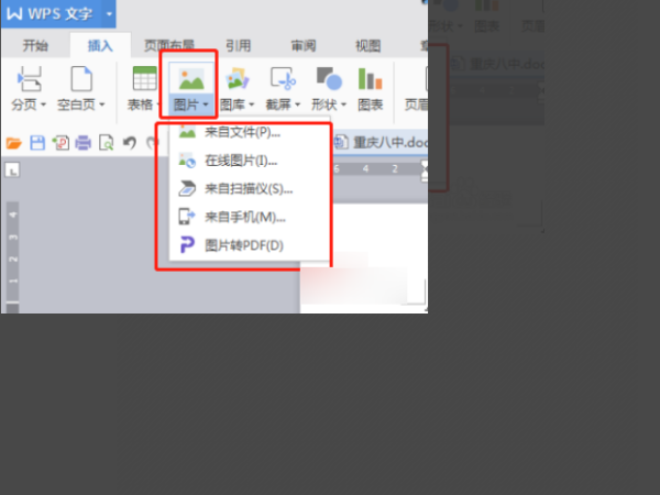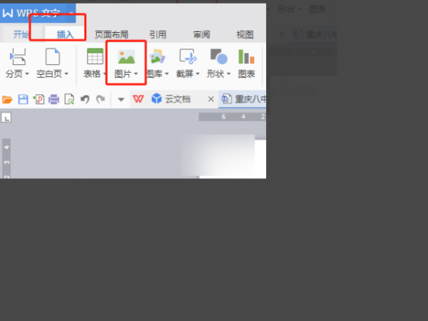 3、在顶部找到插入,然后有个图片的图标。