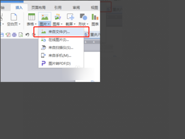 5、在这里选来自文件,也就是从电脑上选择一张图片来插入。
