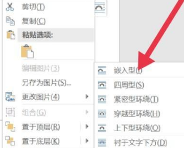 4、接着在弹出的页面中选择嵌入型,如下图所示。