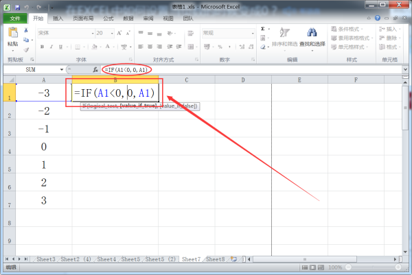 3、在地址栏键入公式“if(A1<0,0,A1)”套用到表格当中。