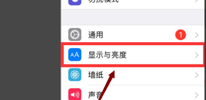 2、在设置的界面中有个显示与亮度的选项,点击它。