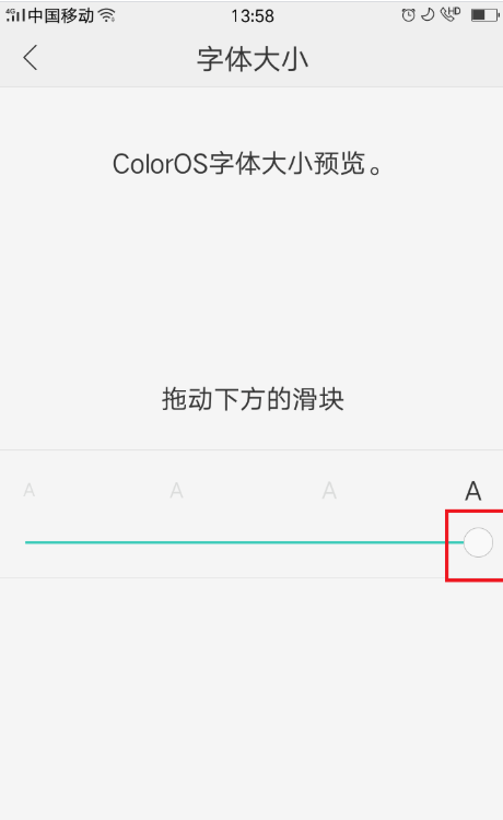 5、鼠标左键点击小圆圈,左右拖动,即可调节字体大小。我们把它拖到最右边看看效果。
