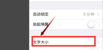 3、进入显示与亮度的界面后,在界面的靠下方的位置有个文字大小的选项,点击它。