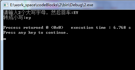 //ch-('A'-'a'):大写转小写。输出ASC码,利用输出格式控制%d就可以自动转换输出了