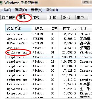 1、打开windows资源管理器,查看运行不正常的进程,如果有进程占用了很大的CPU可能就是病毒或者木马造成的,结束进程将这个异常进程结束;