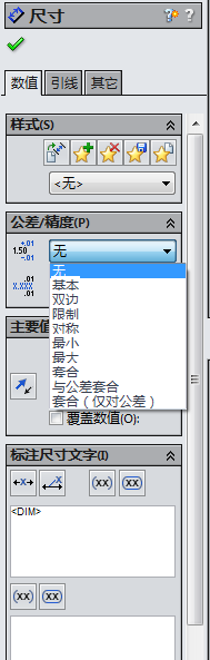 尺寸公差,在标注尺寸时,左侧工具栏中就有公差选项:
