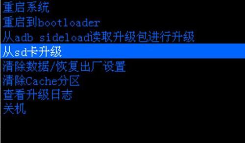 5、以上两步清空完成后,选择从SD卡选择刷机包,进入刚才ROM包放的SD卡或者内置卡选择zip文件,找到ROM包,按开机键或者房子建确认安装,确认安装,稍等会儿就会安装完成。