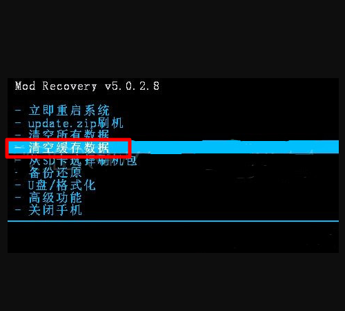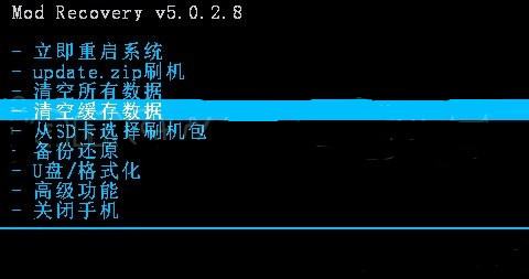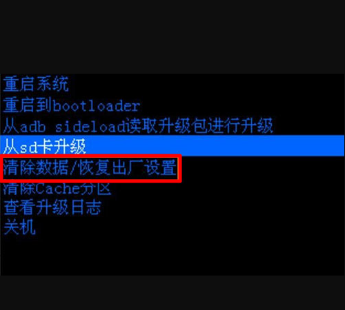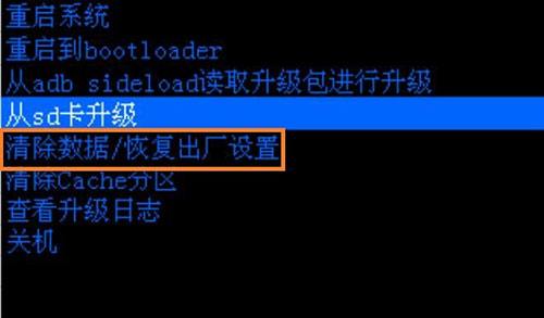 7、在“Recovery”模式中,选择“清除数据”。