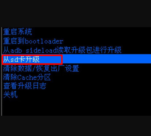 9、回到“Recovery”模式界面中,选择“从SD卡升级”。