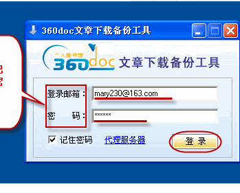 2、下载完成后,输入自己的360doc账号密码,并点击登录。