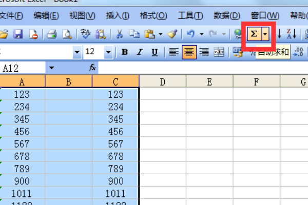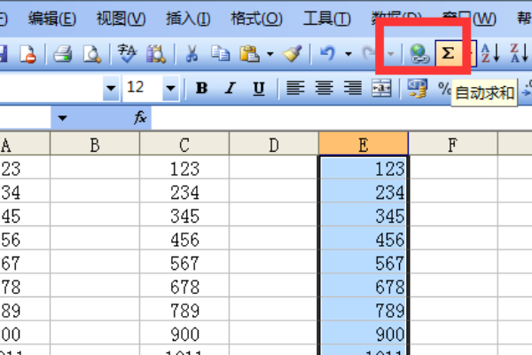 6、选择刚刚转换的数据,然后单击“自动求和”。