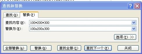 (菜单)编辑→查找→代替→查找内容(输入):100*200*300