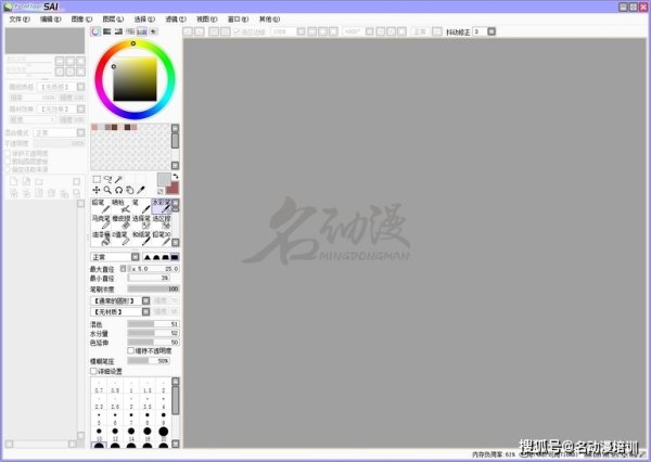 SAI的操作相对简单,并且资源占用很小,即使是一般的电脑也能带得动。缺点在于后期图像处理方面,需要借助PS、优动漫PAINT(CSP)等其他软件来调整后期;文件大小也有限制,无法创建大尺寸的画布。一般主要用于前期打草稿、描线以及上色环节,适合刚接触板绘的新手。