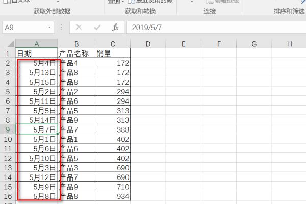 4、如图可以看到,日期已经按照先后顺序排好了。
