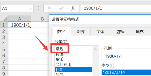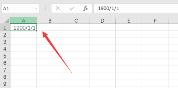 3、回车,输入完成后,却发现,单元格内并没有显示数字【1】,而是显示【1900年1月1日】