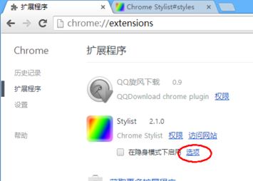 进入扩展程序管理页面,选择stylist扩展程序的选项。