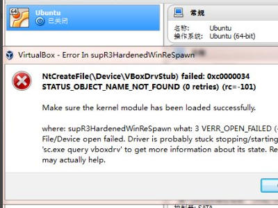 1、首先出错信息:NtCreateFile(\Device\VBoxDrvStub) failed: 0xc000000034,如图。