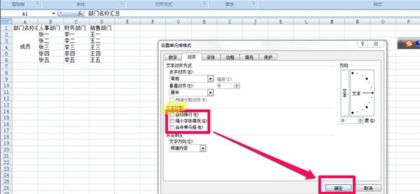 3.选择“对齐”选项卡,取消“缩小字体填充”复选框。单击“确定”按钮返回,在选定的单元格中输入文字或数据。这样就不会自动缩放了。