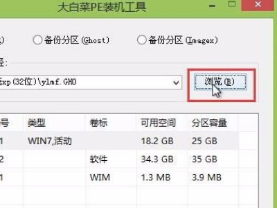 2、接着打开桌面上的大白菜pe装机工具,点击“浏览”,将ghost win7系统镜像包添加进来。