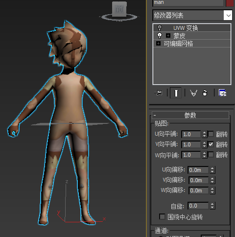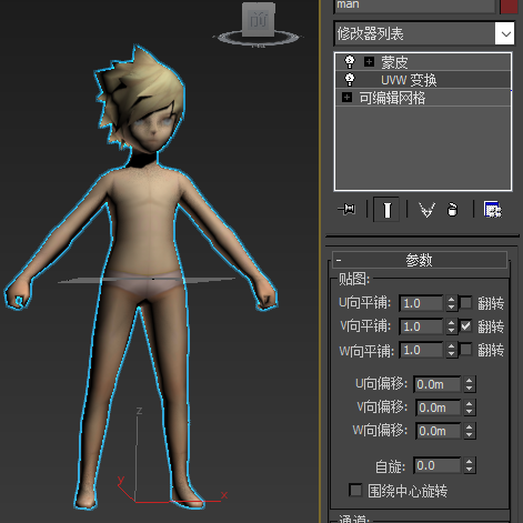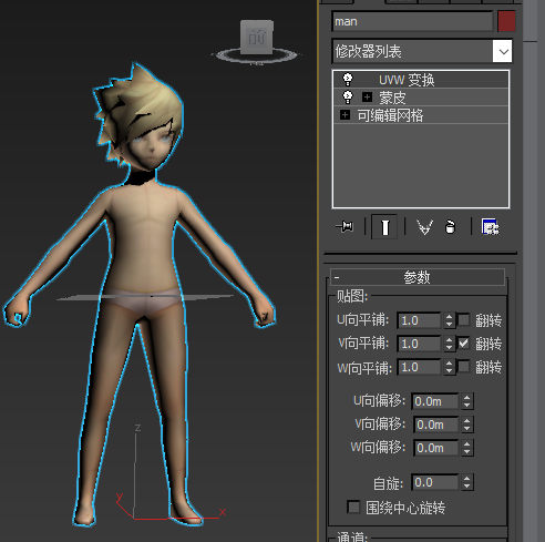001 给一个UVW变换,把你的错乱贴图调整好。
