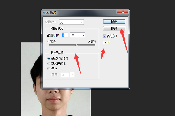 11、在出现的对话框中拉动大小文件之间的按钮,在预览大小中看到满足要求以后点击确定。