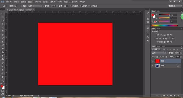 第二步:新建一个图层,然后用“油漆桶”工具涂鸦成你喜欢的颜色,我涂鸦的是你需要的红色。