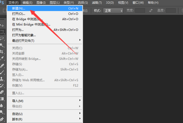 2、在打开的PS软件中点击左上角的文件,选择新建按钮。