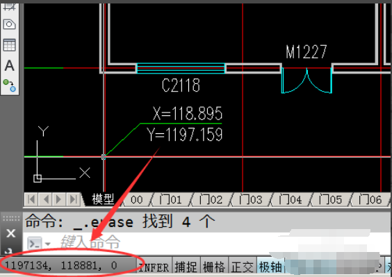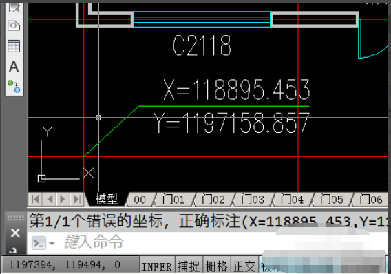 3、当标注完成后我们可以看到标注的坐标,软件默认的单位是1单位=1mm,如果图纸是按照1单位=1m来绘制的(常用于道路工程),那么需要调整一下比例。