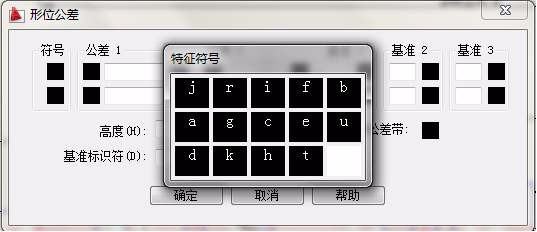 如果AutoCAD形位公差的符号变成英文字母,就是系统缺少一个字体文件引起的。乱码如下图所示:
