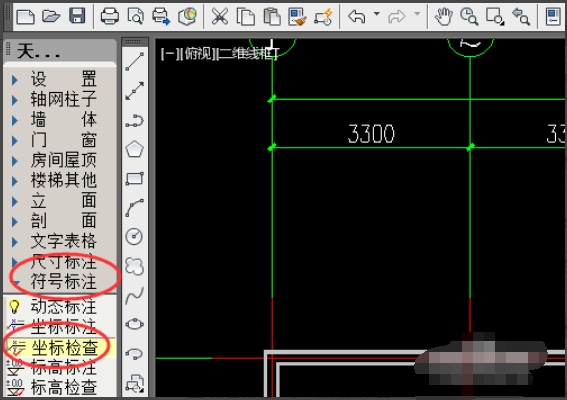 4、点击左侧人工具栏中的符号标注--坐标检查。