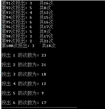 printf("\n第%d次投出:%d共%d次",i+1,n,count[n-1]);