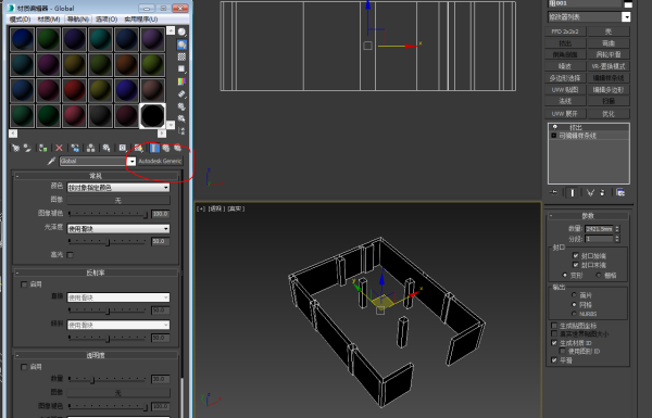 CAD导入3dsmax,挤出后的模型是黑色的,是因为直接用CAD图形挤出了模型,材质是Autodesk Generic ,即Autodesk通用材质。这种材质默认就是黑色的。如下图: