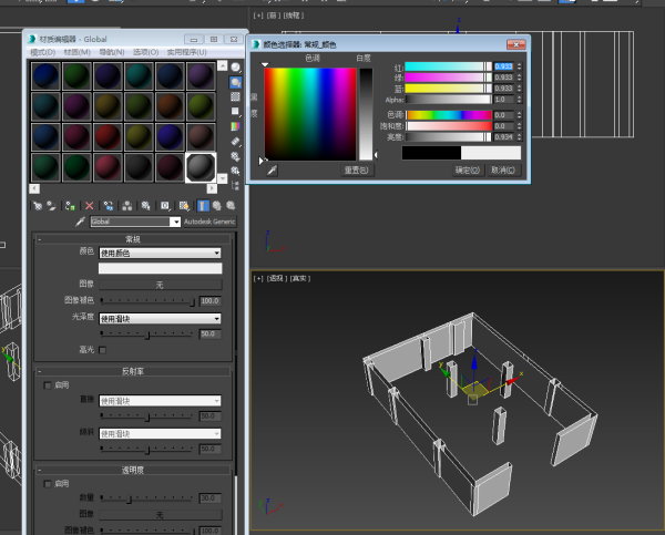 1 将挤出后的墙体用吸管吸出材质,更改颜色即可。如下图。
