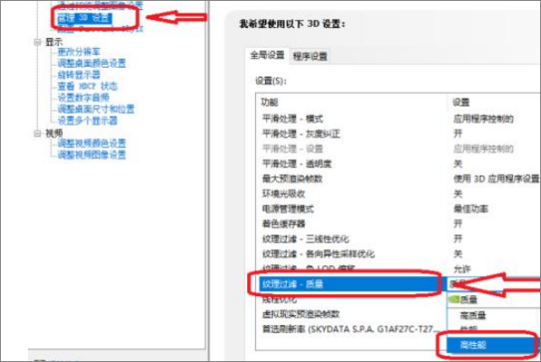 3、继续刚才的窗口,下拉一点,找到—纹理过滤,右边下拉选择—高性能。
