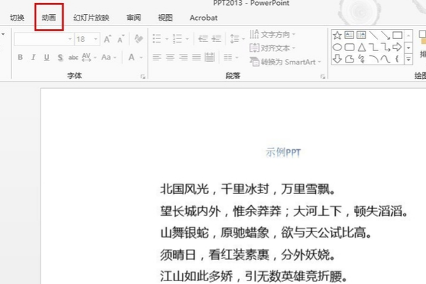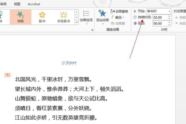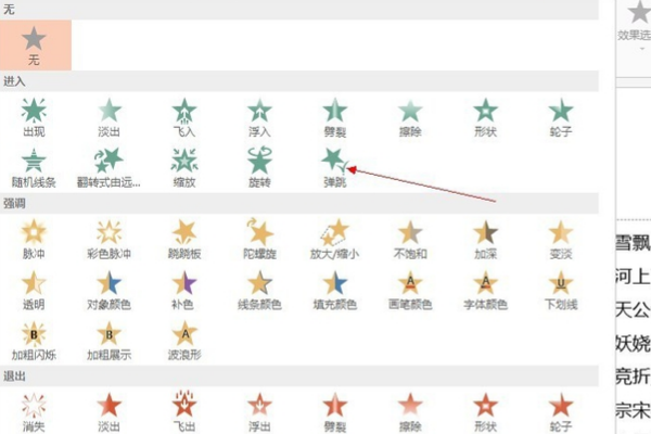 5、此时文字就会弹跳进入PPT,如下图,为进入的过程截图。