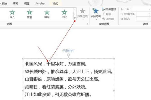 3、选择需要编辑的内容,点击动画中的右侧箭头,如下图所示。