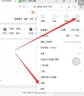⑴打开360浏览器,如图点击右上角3条横线这里,弹出窗口,点击设置,